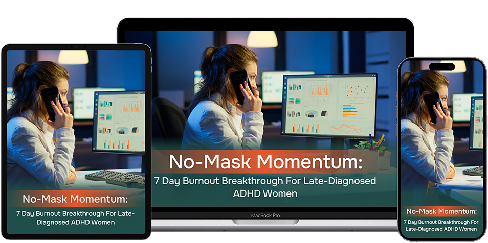 This is specifically designed for late-diagnosed ADHD women who are tired of masking. Instead of trying to make you more neurotypical, it celebrates and works WITH your ADHD brain. There's no new platform to figure out or maintain.